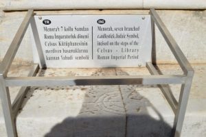 In Acts 18:19 Ephesus is mentioned as having a synagogue: “They arrived at Ephesus, where Paul left Priscilla and Aquila. He himself went into the synagogue and reasoned with the Jews.’’ On the stairway, in front of the monumental Celsus Library, we can see a small menorah detail, which shows that there were Jews living in the city.