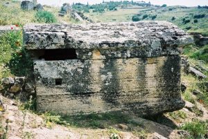 In Hierapolis (Pamukkale), an ancient Roman city and World Heritage site we can see a mixture of pagan, Jewish and early Christian influences. The hot springs of Pamukkale were used as a popular spa since the 2nd century; people were going there for health reasons, when retired, and a lof of them died there, so the site has a large necropolis area with many sarcophagi. One specific sarcophagus, located near the remains of the Martyrium of St. Philip, has a very interesting inscription that reads:
