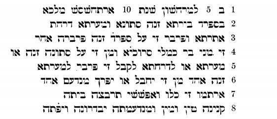 With the capacity of approximately 1000 persons, the Synagogue of Sardis is the most outstanding Jewish monument from antiquity in the entire region of Asia Minor. Sepharad mentioned in Obadiah (1:20) could have been Sardis, as its Lydian name is Sfard or Sward. During the excavations in Sardes an interesting bilingual – Aramaic and Lydian inscription from the 6th century BC was discovered. The Hebrew-Aramaic name of Sardis, סְפָרַד, found in lines 2 and (probably) 3, has been familiar from the Old Testament.